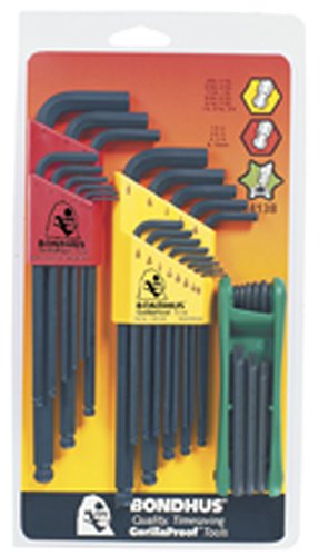 - The Triple Pack includes a 9 piece Ballend L-wrench set (1.5-10mm), a 13 piece Ballend L-wrench set (.050-3/8"), and a 8 piece Star GorillaGrip® Fold-up set (T9-T40)
